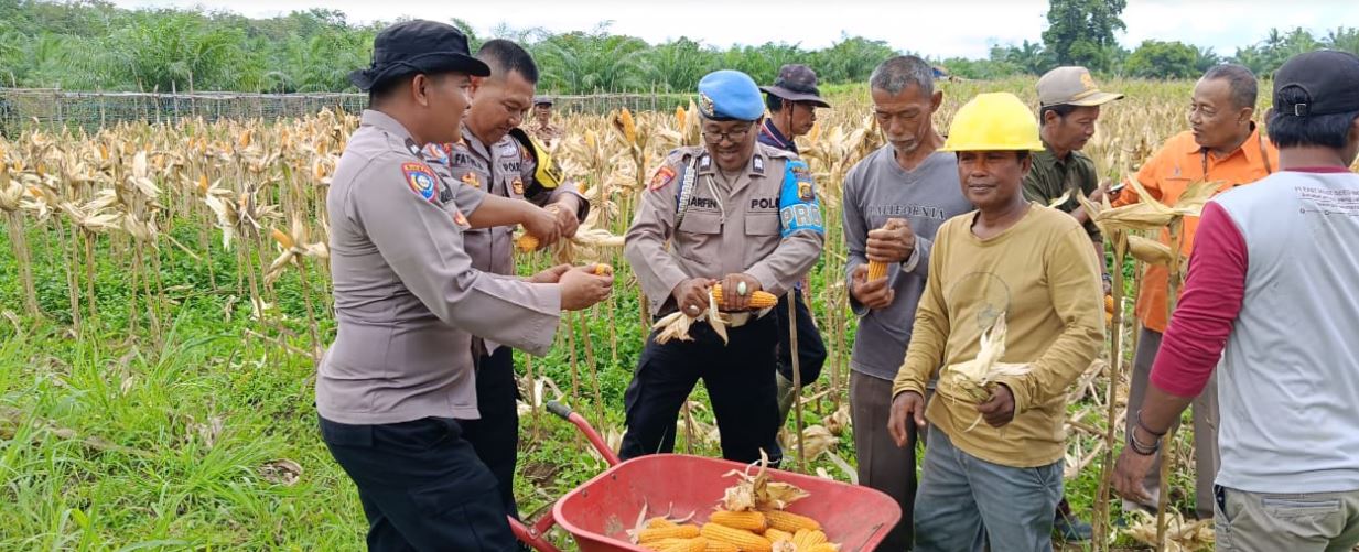 Polsek Rimbo Ulu Dukung Ketahanan Pangan Nasional Lewat Panen Raya Jagung di Desa Wanareja