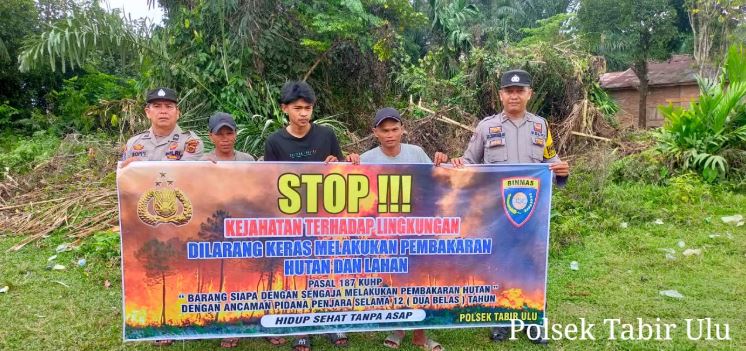 Kegiatan dipimpin oleh Kanit Binmas Aipda Rofi’i, S.H. dan Bhabinkamtibmas Aipda Tiro Nainggolan, dengan fokus utama menyosialisasikan bahaya karhutla, dampak lingkungannya, serta ancaman pidana hingga 12 tahun penjara bagi pelaku pembakaran hutan atau lahan.