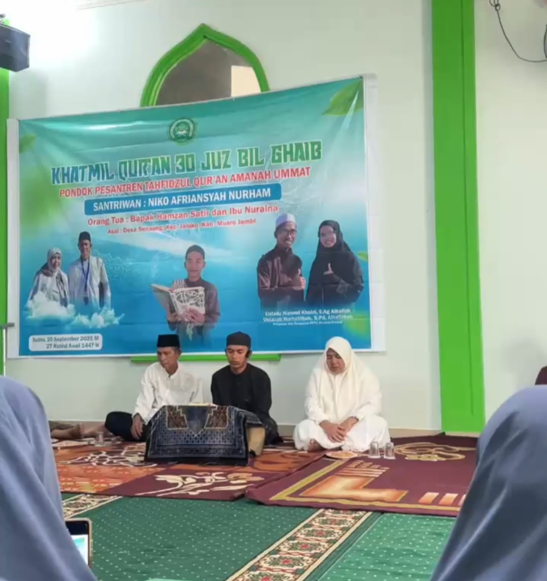 Dengan keberhasilan angkatan pertama ini, Pondok Pesantren tahfidz Qur’an Amanah ummat berharap program Tahfizh di masa depan semakin berkembang, menghasilkan generasi penghafal Al-Qur’an yang tidak hanya cerdas, tetapi juga berkarakter mulia. Acara ini menjadi momen penuh inspirasi, harapan, dan doa agar para santri terus istiqamah dalam menjaga hafalan mereka dan menjadi teladan bagi masyarakat, pungkasnya. (Sekatojambi.com/Noval)