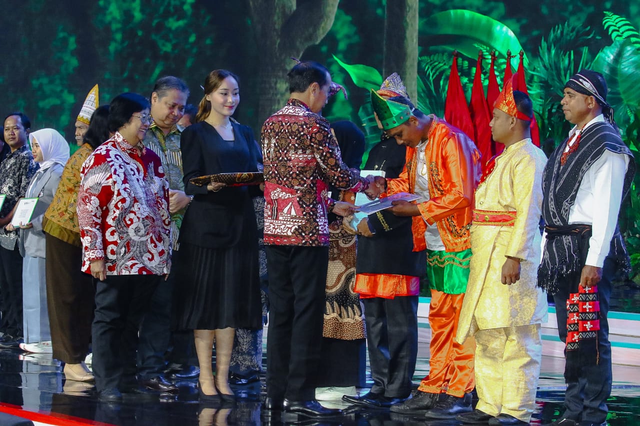 SEKATOJAMBI.COM, JAKARTA – Presiden Joko Widodo menyerahkan Surat Keputusan (SK) Perhutanan Sosial dan SK Tanah Obyek Reforma Agraria (TORA), serta Sertifikat Layanan Dana Lingkungan kepada perwakilan masyarakat di Festival Lingkungan Iklim Kehutanan Energi Baru Terbarukan (LIKE) 2, di Jakarta Convention Center (JCC), pada Jumat (9/8/2024).