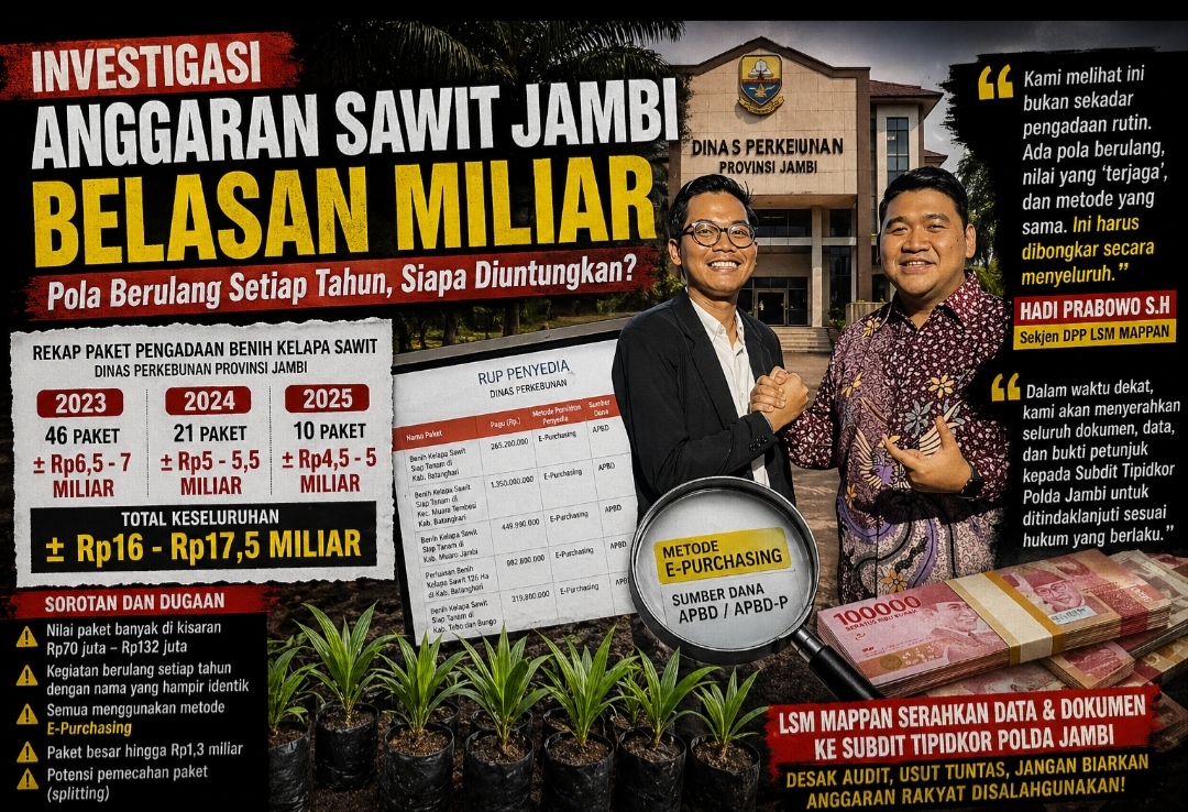 “Dalam waktu dekat, kami akan menyerahkan seluruh dokumen, data, serta bukti petunjuk yang kami miliki kepada Subdit Tipidkor Polda Jambi untuk ditindaklanjuti sesuai hukum yang berlaku,” tegasnya.