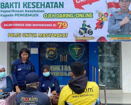 Sambut HUT Bhayangkara ke-79, Polresta Jambi Gelar Pemeriksaan Kesehatan Gratis bagi Pengemudi Ojol