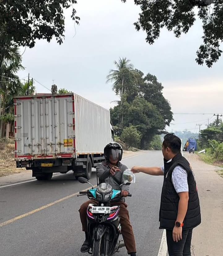 Ramadhan Berkah, Polsek Kumpeh Ulu Bagi-bagi Takjil ke Pengendara di Jalan