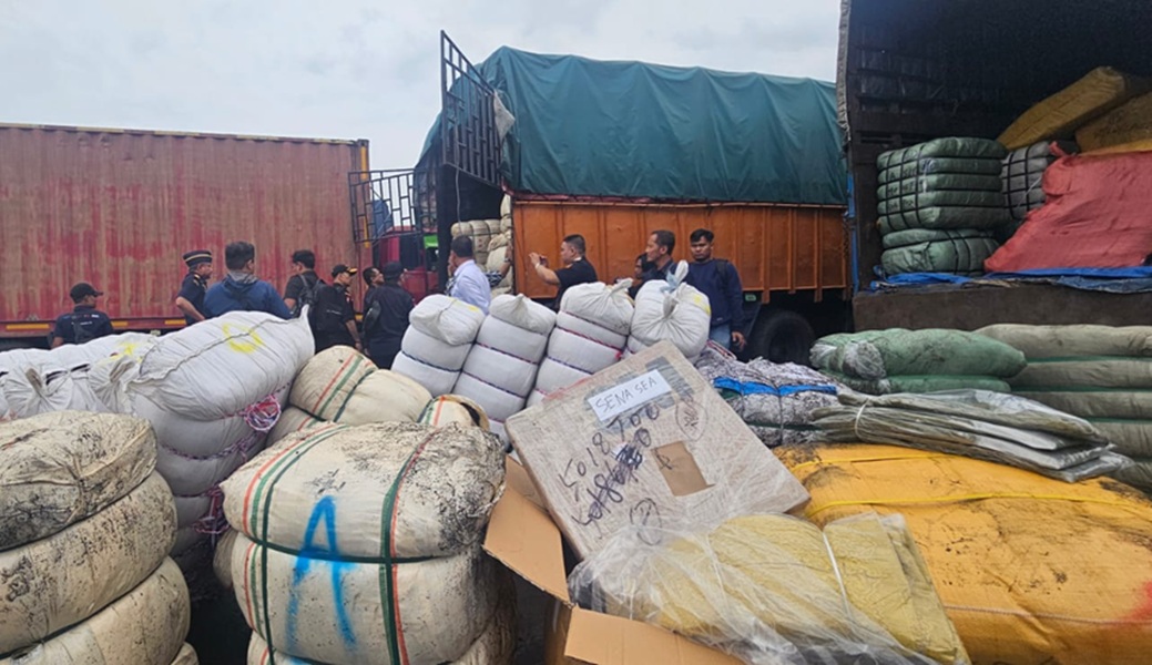 Kemudian, ballpress berisi pakaian bekas, kacang tanah, perabotan dari besi, dan barang lainnya. Total temuan mencapai kurang lebih 10.000 koli.