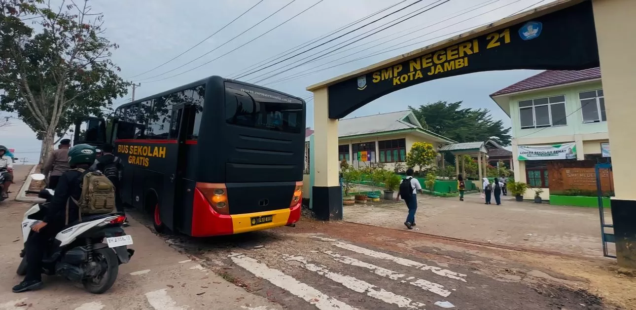 Sesuai jadwal pada pukul 06.30 WIB bus sekolah tiba di lokasi penjemputan anak sekolah di kawasan perumahan, kemudian mengantar para pelajar ke sejumlah sekolah negeri di Kota Jambi.