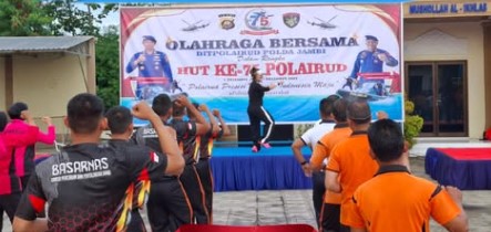 SEKATOJAMBI.COM, JAMBI – Ditpolairud Polda Jambi menggelar Olahraga Bersama di halaman Mako Ditpolairud dalam rangka memperingati HUT ke-75 Polairud, Selasa (18/11/25).