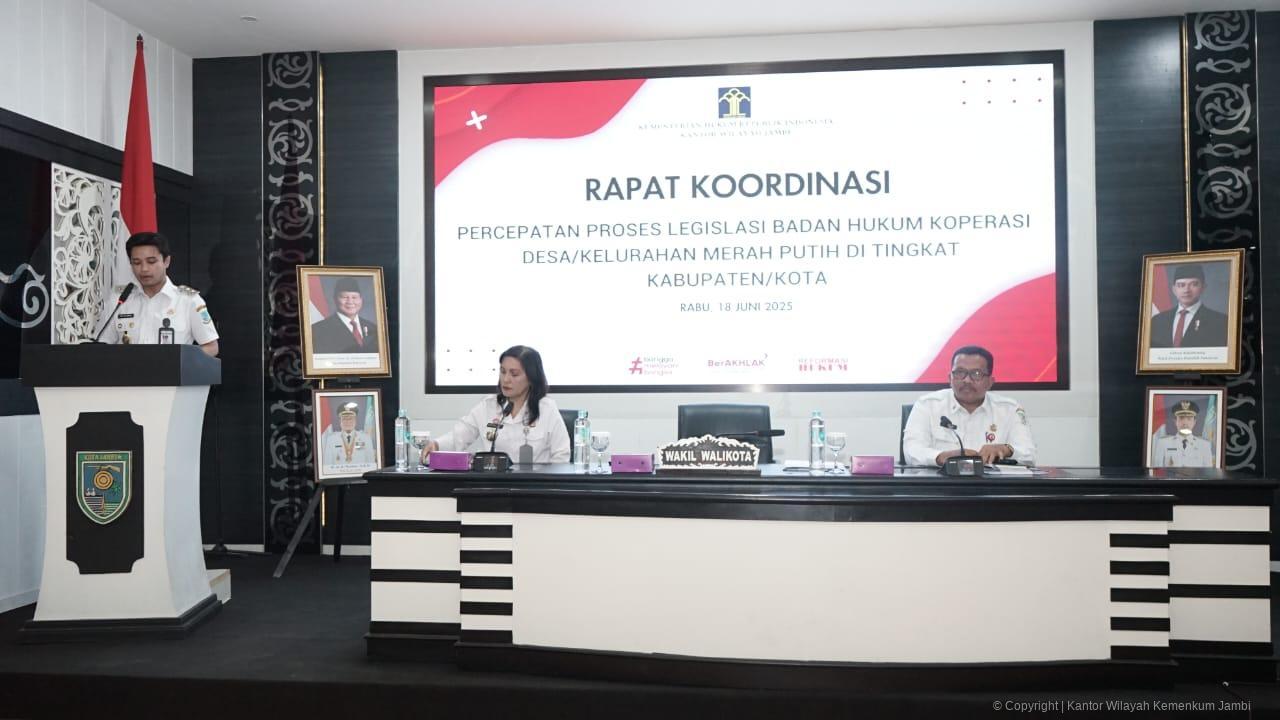 SEKATOJAMBI.COM, JAMBI – Dalam upaya mempercepat pendirian Koperasi Kelurahan Merah Putih sebagai bentuk penguatan ekonomi berbasis komunitas, Kantor Wilayah Kementerian Hukum Jambi menggelar Rapat Koordinasi bersama Dinas Koperasi UKM Kota Jambi, Rabu (18/6/2025), bertempat di Aula Kantor Walikota Jambi.