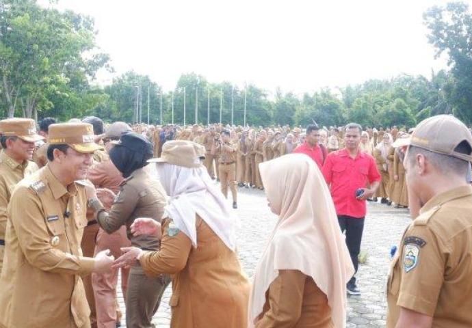 Berbaris rapi di bawah langit Sengeti yang cerah, para pegawai satu per satu menyalami Bupati dan Wakil Bupati, menyampaikan ucapan maaf dan selamat hari raya dalam suasana hangat dan penuh keakraban.