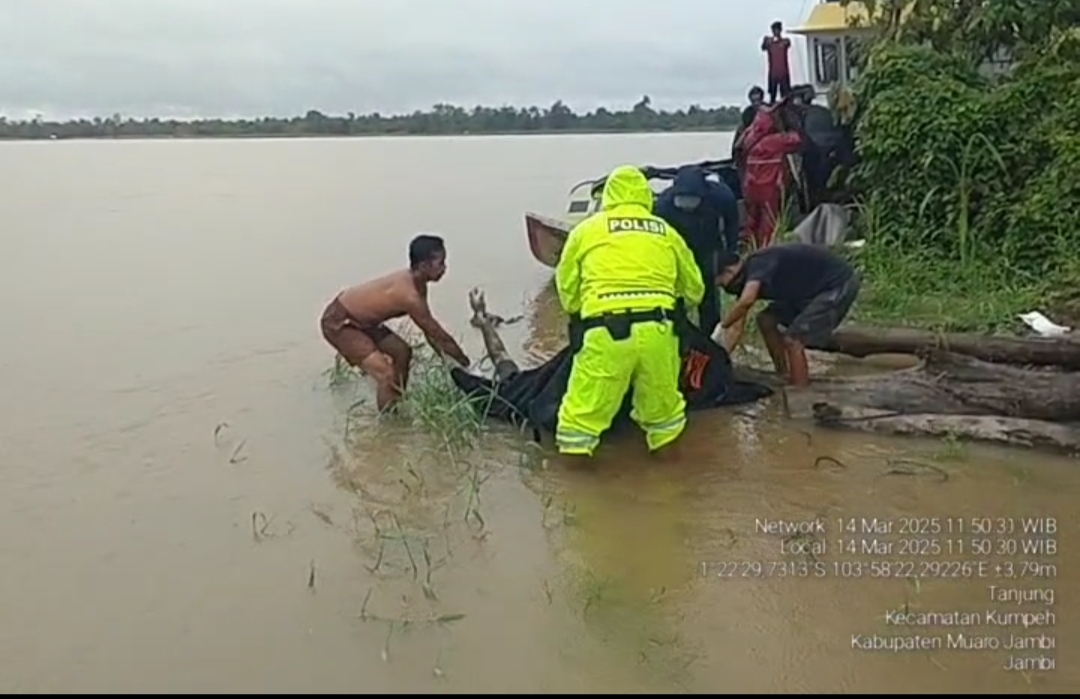 Sekatojambi.com (Kota Jambi) Tiga hari tenggelam di tepian perairan sungai batang hari akhirnya kapten kapal Deni Refki Sebayang (43) ditemukan terapung dengan kondisi tidak bernyawa di Aur Gading Olak Badar Kecamatan Kumpeh Ilir Muaro Jambi.
