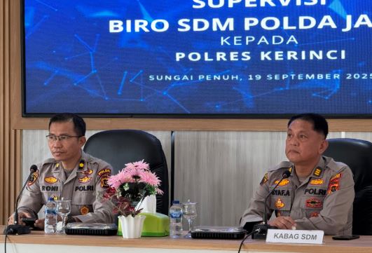 SEKATOJAMBI.COM, KERINCI – Tim Biro Sumber Daya Manusia (SDM) Polda Jambi melaksanakan supervisi ke Polres Kerinci. Kegiatan ini merupakan bagian dari program kerja Biro SDM untuk memastikan pengelolaan personel di jajaran kepolisian berjalan dengan baik, tertib, dan sesuai dengan aturan yang berlaku.