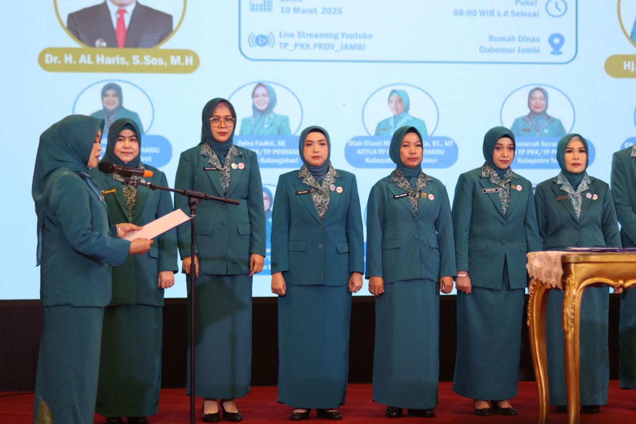 Sementara, Gubernur Jambi Al Haris dalam arahannya, menegaskan, komitmennya untuk mendukung program yang akan dijalankan keempat organisasi yang telah dilantik dan dikukuhkan tersebut. Gubernur juga mengingatkan bahwa jabatan yang disematkan kepada istri Bupati dan Wali Kota itu melekat pada jabatan kepala daerah, untuk itu diharapkan pimpinan organisasi harus dapat bermitra dengan pemerintah untuk mendukung kemajuan daerah.