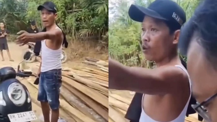 Selanjutnya, seorang pria lain rombongan yang datang disebut akan melakukan penertiban menantang pria tersebut untuk memanggil beking dari aktivitas illegal drilling di sana.
