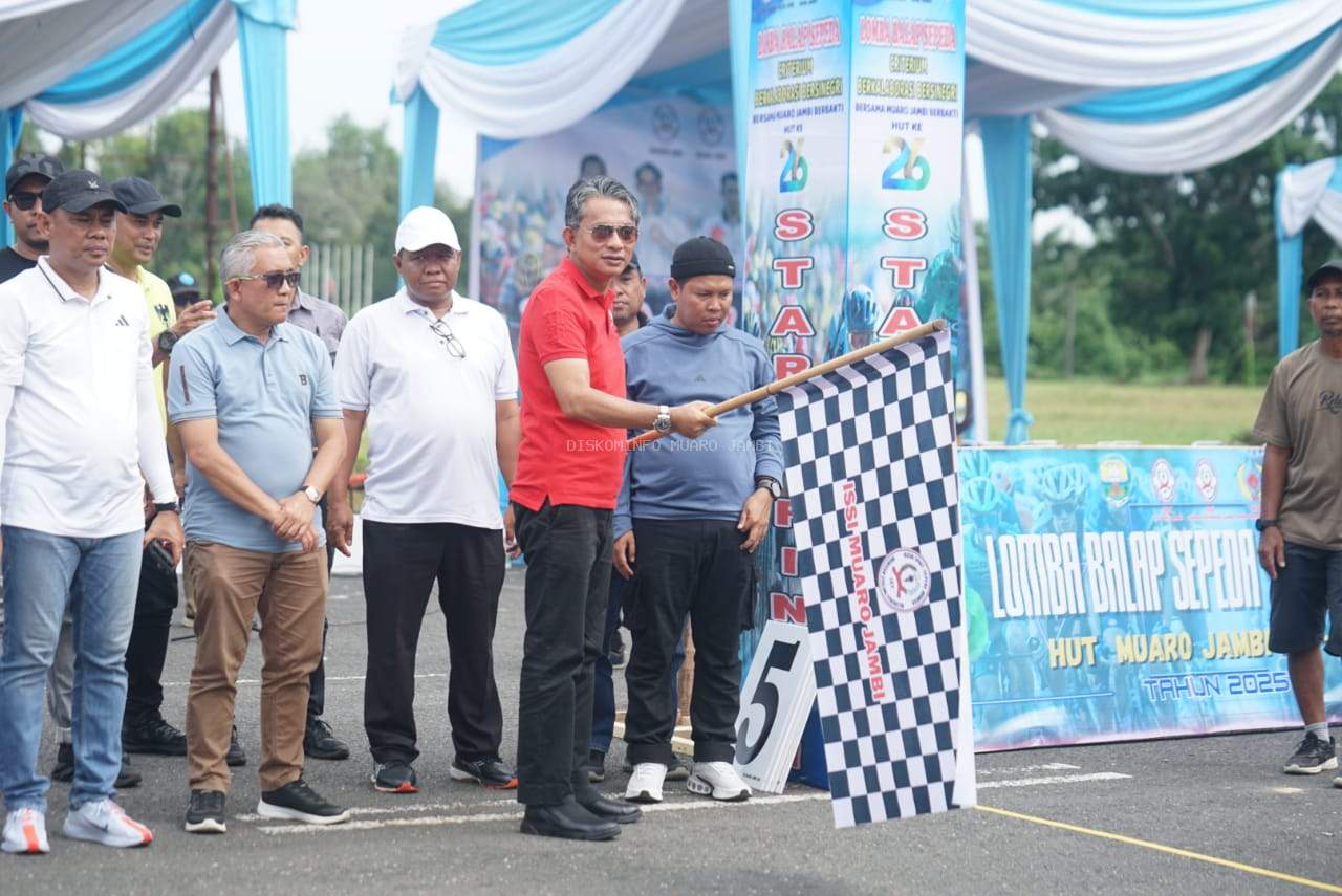 SEKATOJAMBI.COM, MUARO JAMBI – Wakil Bupati Muaro Jambi, Junaidi H. Mahir, resmi membuka Lomba Balap Sepeda Criterium 2025 dalam rangka memperingati Hari Ulang Tahun (HUT) Kabupaten Muaro Jambi ke-26 tahun. Kegiatan ini berlangsung di kawasan komplek Perkantoran Bupati Muaro Jambi, Bukit Cinto Kenang, Minggu (26/10/2025), dengan mengusung tema “Berkolaborasi dan Bersinergi Bersama Muaro Jambi Berbakti”.