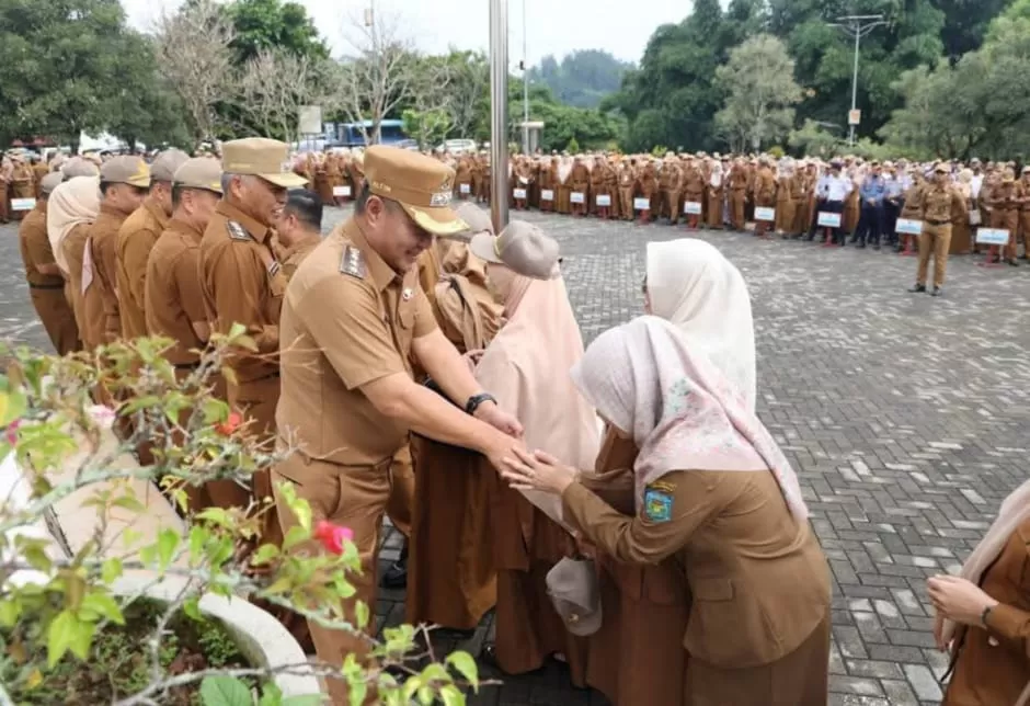 Terakhir, apel dilanjutkan salam-salaman antara Wali Kota, Wakil Wali Kota dan Sekda serta ASN lingkup Pemkot Sungai Penuh.